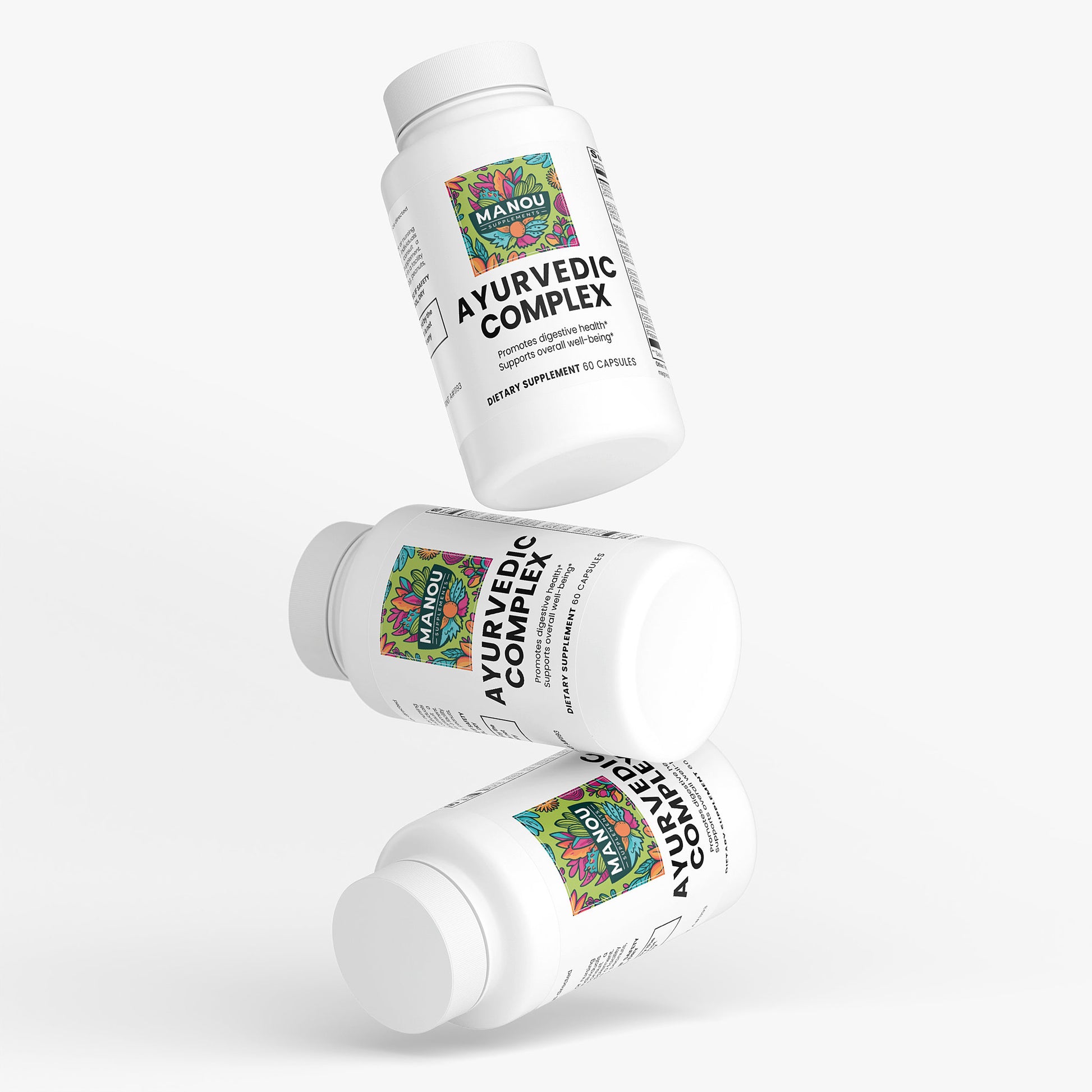 Ingredients: Ashwagandha Root (2.5% extract), Turmeric Root (95% extract), Cinnamon Bark Powder (Cinnamomum wilsonii), Holy Basil Leaf (2% extract), Garlic Bulb (1% extract), Trikatu Powder (consisting of black pepper fruit powder, long pepper fruit powder, and ginger root powder), Triphala Powder (consisting of amla fruit powder [Phyllanthus emblica], bibhitaki fruit powder [Terminalia bellirica], and haritaki fruit powder [Terminalia chebula]), Amla Fruit Powder, Sandalwood Wood Powder (Pterocarpus soyauxii), Cloves Bud Powder, Celery Seed Powder, Licorice Root Powder, Brahmi Leaves (20% extract) (Bacopa monnieri), Shilajit, Cordyceps (mycelium), Lavender Powder (whole plant), Peppermint Leaf Powder, Hydroxypropyl methylcellulose, Vegetable magnesium stearate, Silicon dioxide.