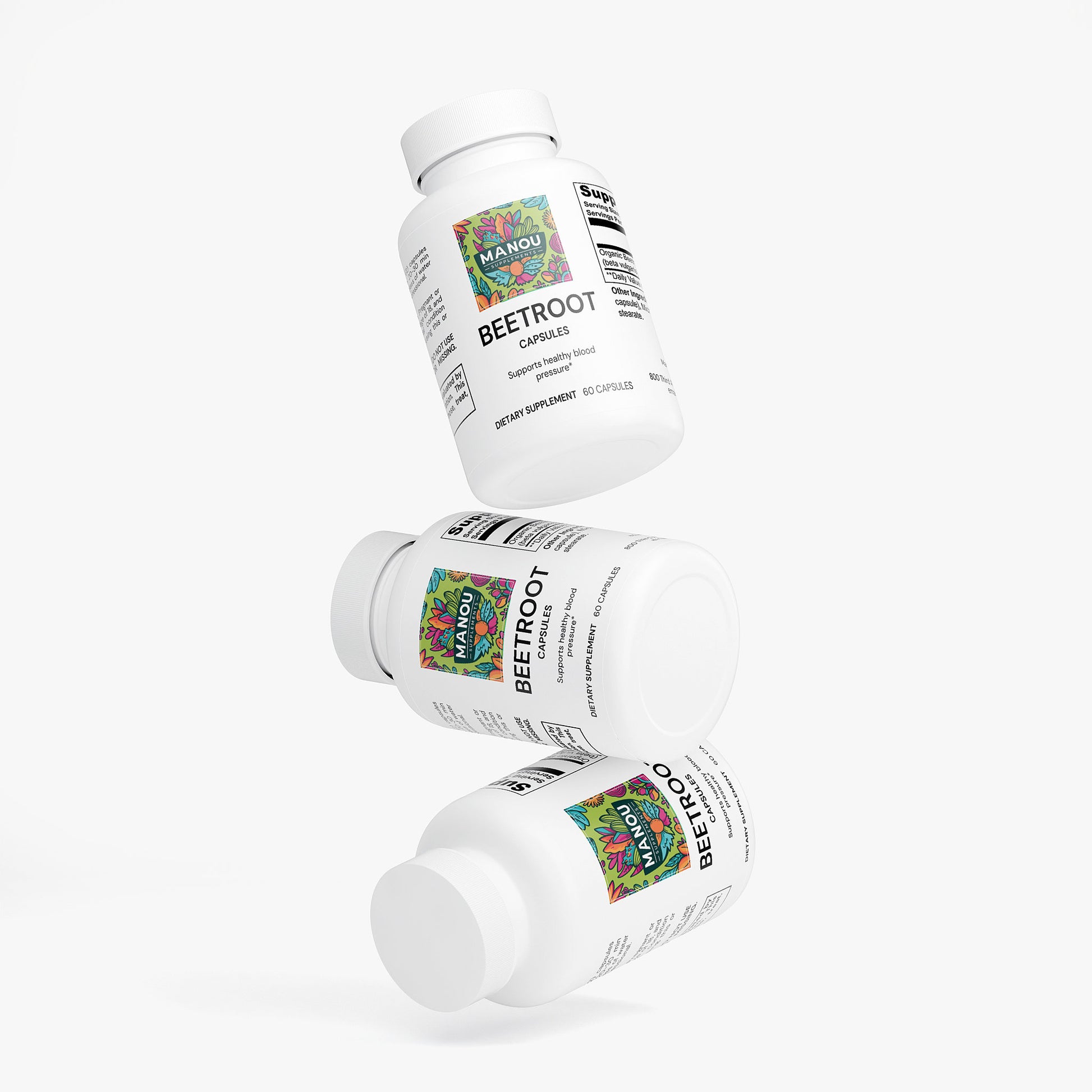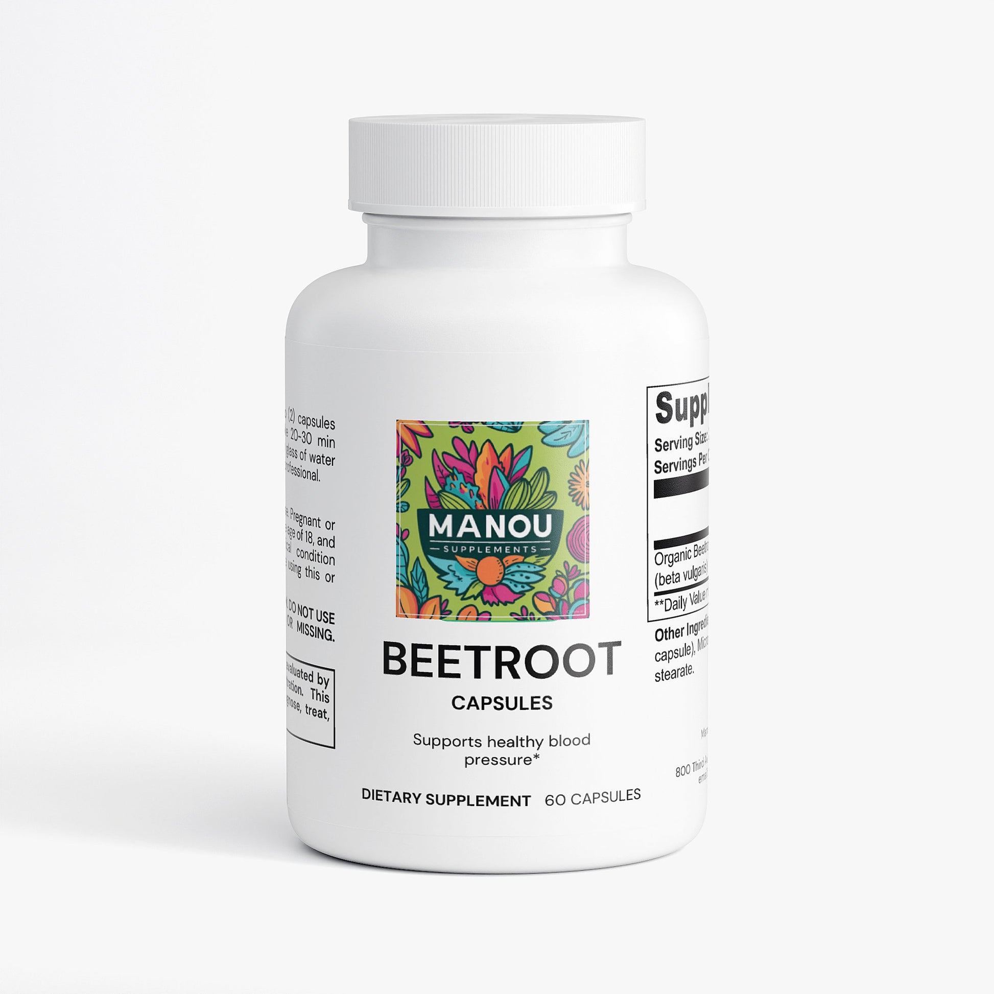 Ingredients: Organic Beetroot Powder (beta vulgaris), Hypromellose (vegetable capsule), Microcrystalline Cellulose, Magnesium Stearate.