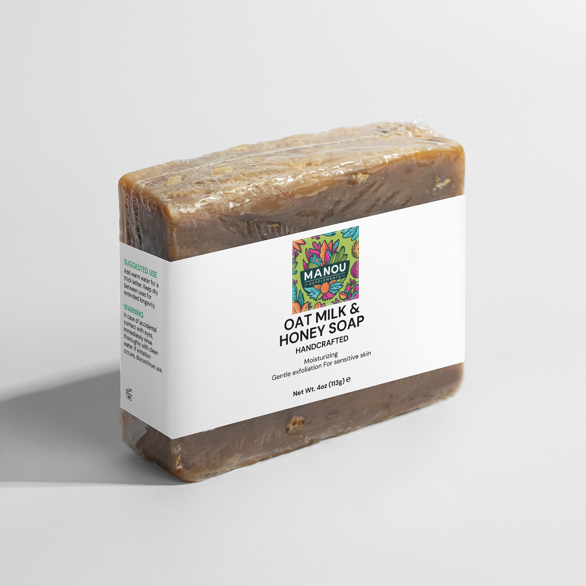 Ingredients: Saponified Oils (Olive Oil, Organic Palm Oil**, Organic Coconut Oil*, Organic Shea Butter*), Goat Milk, Fragrance, Oatmeal, Honey. **Fair Trade Sustainable Palm, *Fair Trade